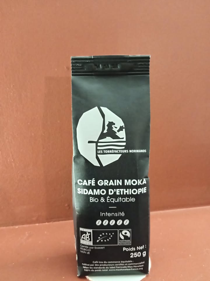 un café grain arabica légèrement acidulé. parfum unique de fleur de jasmin. intensité 5